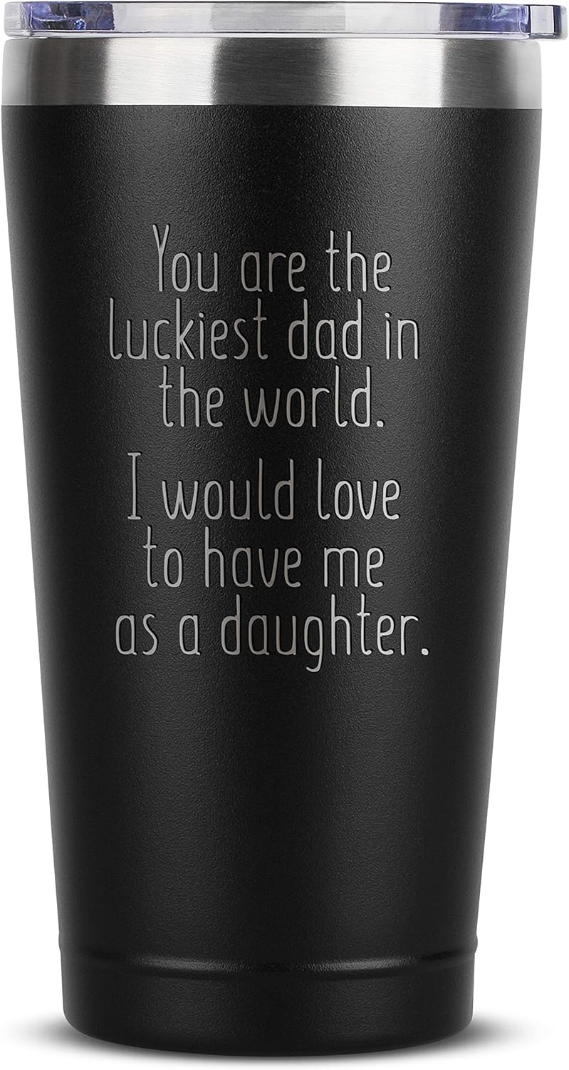 Amazon Com Luckiest Dad Daughter 16 Oz Black Insulated