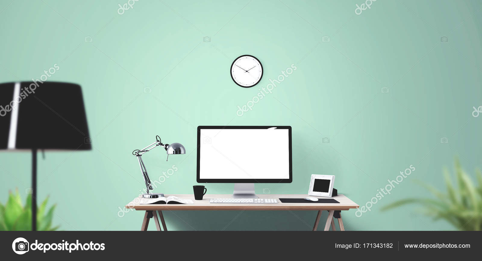 Wide Green Mock Up Screen Desktop Computer Standing On The