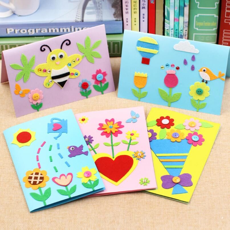 3pcs Children Handmade 3d Diy Greeting Card Toys Non Woven Fabric