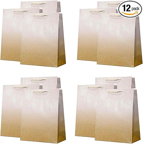 Amazon Com Uniqooo 12pcs Gold Glitter Ombre Gift Bags Bulk 100