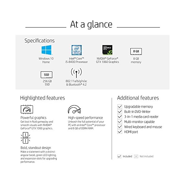 Amazon Com Hp Pavilion Gaming Pc Desktop Computer Intel Core I5 8400 Nvidia Geforce Gtx 1060 8gb Ram 256gb Ssd Windows 10 790 0020 Black Computers Accessories