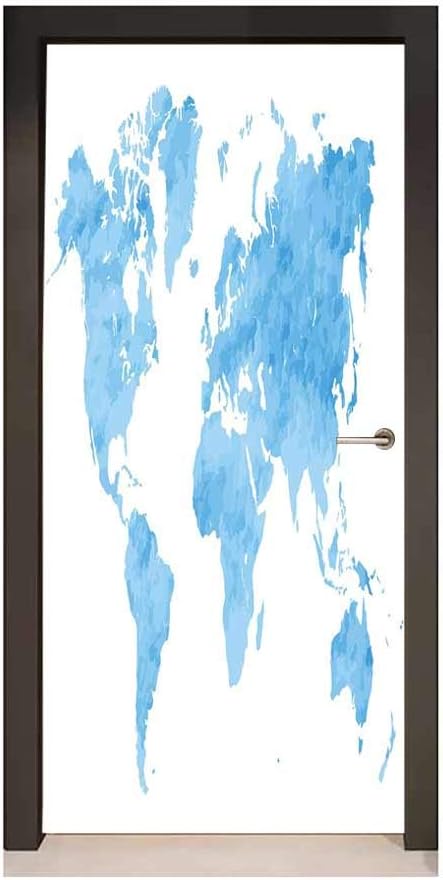 Amazon Com Homesonne Map 3d Door Wallpaper Blue Watercolor Style